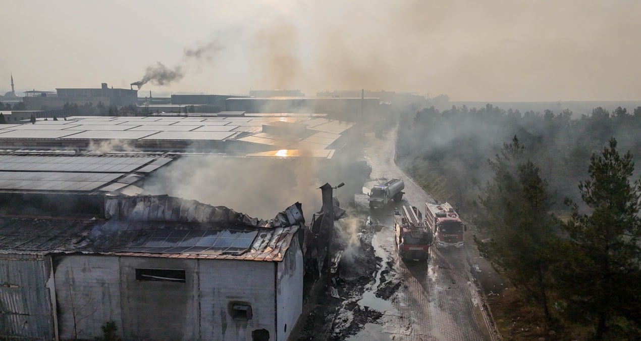 Kısa sürede büyüyen alevler, fabrikanın çatısındaki güneş panellerine sıçradı.