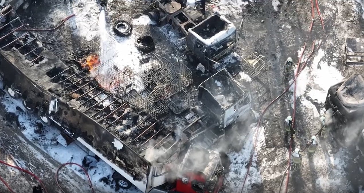 İlk belirlemelere göre, otoparktaki 6 tır yangında zarar gördü. Yanan tırlarda alkol bulunduğu iddia edildi. Yangının çıkış sebebine ilişkin inceleme sürüyor.