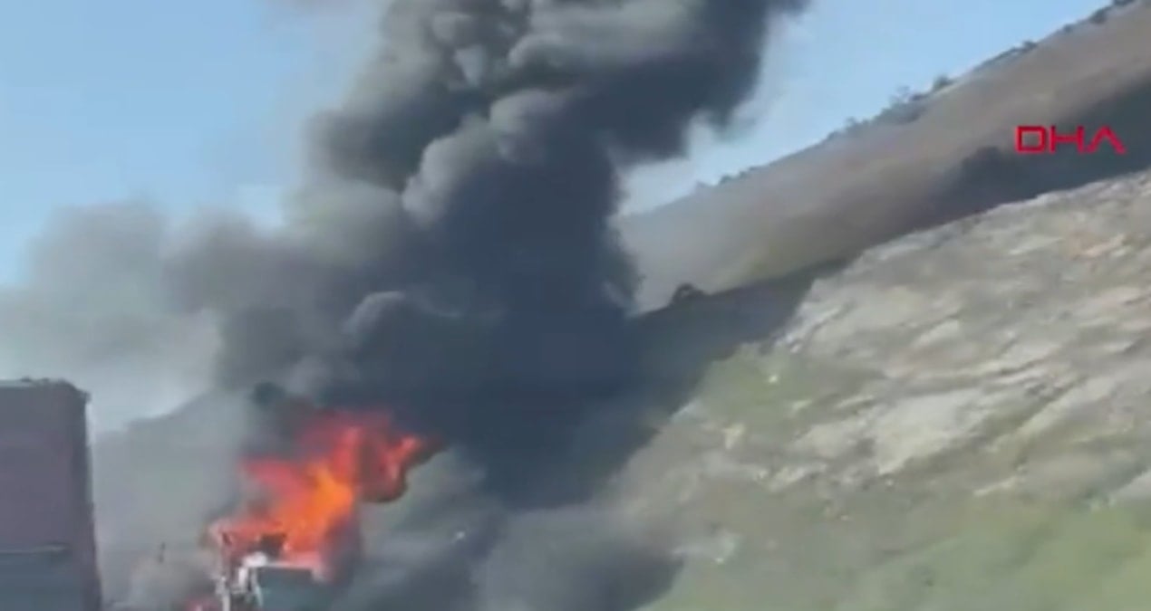 Kuzey Marmara Otoyolu’nun Eyüpsultan Fenertepe gişeler mevkiinde otoyolda seyir halinde olan bir hafriyat kamyonunda henüz belirlenemeyen bir nedenle yangın başladı. Kamyondan yükselen duman ve alevler çevredeki sürücülere hareketli anlar yaşattı.
