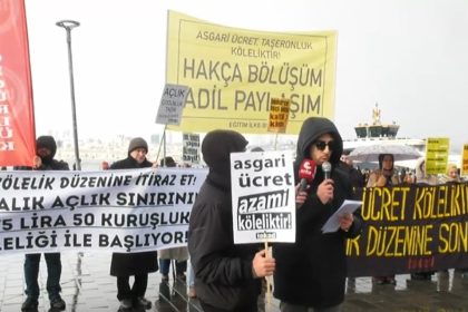 İstanbul’da Sağlık İlke-Sen ve Eğitim İlke-Sen üyeleri, 2026 yılı asgari ücretinin 28 bin 75 TL olarak belirlenmesini protesto etmek amacıyla Üsküdar’da kar altında basın açıklaması yaptı. Eylem sıras...